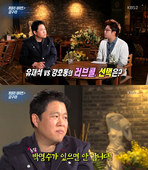 김구라는 27일 방송된 KBS2 '연예가중계 게릴라 데이트에 출연해 "유재석과 강호동 중 1인자를 가릴 수 있느냐"는 리포터의 질문에 이 같이 대답했다.