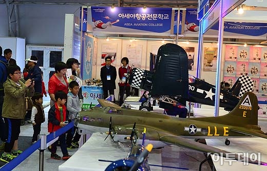 ‘2013경기안산항공전’이 1일 오전 경기 안산시 상록구 경기테크노파크 앞에서 열렸다. 근로자의 날을 맞아 나들이 나온 어린이들이 모형비행기 전시물을 둘러보고 있다.