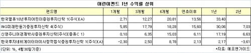 특히 일부 개별펀드들의 수익률은 ‘A+’이다. ‘한국밸류10년투자어린이’(33.40%)와 ‘ING미래만들기’(30.06%) 1년 수익률이 30%를 넘는다. 국내주식형 가운데 상위권에 해당하는 성적이다. ‘신영주니어경제박사’(17.19%), ‘한국투자네비게이터아이사랑’(2.17%) 등도 안정적인 수익률을 거두고 있다.