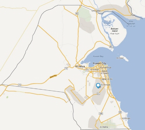 ▲대림산업은 쿠웨이트에서 약 5700억원 규모의 유황처리시설 개보수 및 증설공사를 수주했다고 2일 밝혔다. 사업지인 미나 알 아흐마디(Mina Al-Ahmadi) 정유공장 위치도. (자료=대림산업 제공)