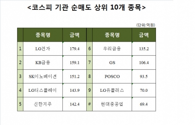 [코스피 기관 순매도상위 10개 종목]