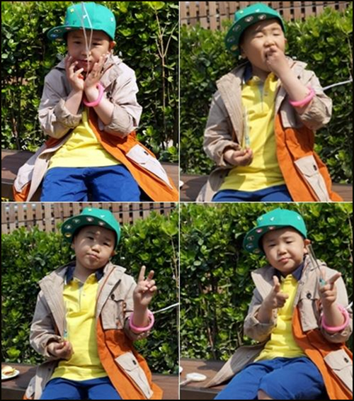 사진 속 윤후는 꽃받침 포즈를 비롯해 브이 포즈 등 다양한 귀요미 포즈를 취하고 있다. 여기에 햄버거를 열심히 먹는 먹방 포즈는 보는이들의 웃음을 자아낸다.