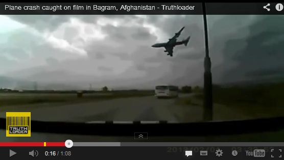 영상에서 문제의 화물기는 공중으로 치솟다가 기우뚱하며 90도 회전하더니 갑자기 땅바닥으로 곤두박질친다. 아프간 반군 탈레반은 자신들이 비행기를 격추시켰다고 주장했지만 근거를 제시하지는 않았다.