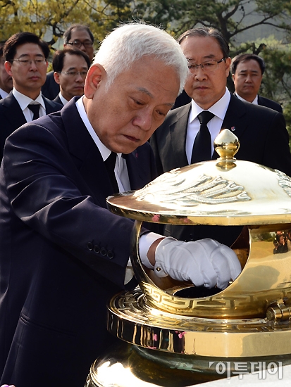 [포토]故 김대중 전 대통령 묘역 분향하는 김한길 민주당 새 대표