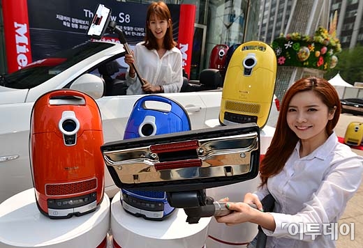 독일 가전업체 밀레가 6일 오전 서울 청계광장 앞에서 진공청소기 ‘S8 시리즈 6종'을 선보이고 있다.