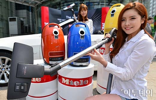 독일 가전업체 밀레가 6일 오전 서울 청계광장 앞에서 진공청소기 ‘S8 시리즈 6종을 선보이고 있다.