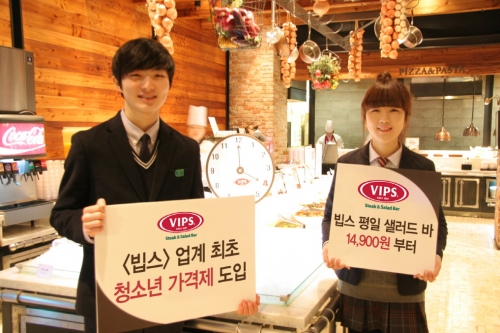 스테이크 전문점 빕스는 6일부터 패밀리 레스토랑 업계 최초로 중고등학생을 대상으로 성인요금보다 30% 저렴한 가격제를 도입한다고 6일 밝혔다.