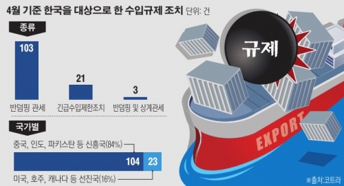 코트라 관계자는 “글로벌 경기 침체가 장기화하고 있는 가운데 신흥국으로의 한국 수출이 크게 늘면서 집중 타깃이 된 측면이 있다”며 “정부의 통상외교 강화와 더불어 비가격 분야의 경쟁력 향상 노력이 필요하다”고 말했다.