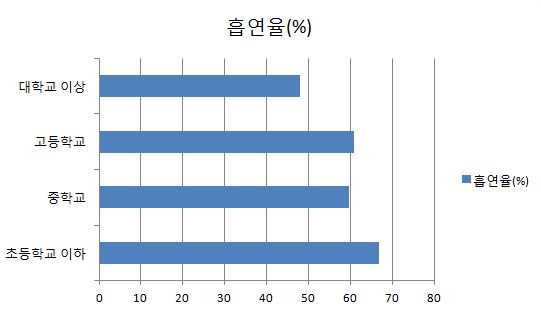 지난해 8월 보건복지부가 발표한 ‘2011년 지역건강통계’에서도 가구당 월평균 소득이 높은 서울 서초구, 강남구, 송파구는 흡연율이 30% 대로 낮았고, 반대로 가구당 소득이 낮은 금천구, 성북구, 종로구 등은 흡연율이 50%에 가까웠다.