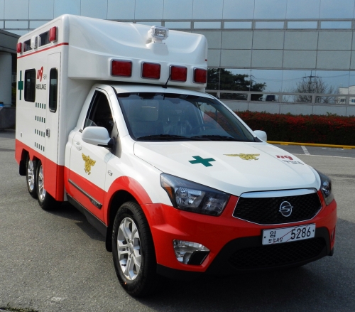 이번에 전시된 앰뷸런스는 ‘e-XDi200 LET’ 엔진과 사륜구동 시스템 등 코란도스포츠가 갖고 있는 강력한 주행성능은 물론 프레임 기반의 튼튼한 차체 안전성으로 무장했다. 또한 자동변속기와 운전석 및 동반석 에어백 등 기존 앰뷸런스와 차별화된 경쟁력을 갖췄다.