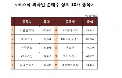 [코스닥 외국인 순매수 상위 10개 종목]