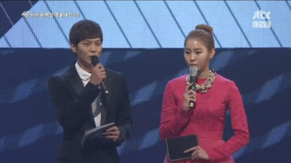 이날 시상식에서 주원과 유이는 TV부문 남자연기상 시상자로 무대에 올랐다. 유이는 “정말 오랜 만이에요. 작년에 신인상 같이 받았을 때 보고 처음인 것 같아요. 그런데 날 잊은 거에요?”라고 말하자 주원은 살짝 어색한 표정을 지으며 “대본에도 없는 말씀을 하시네요”라고 말하며 위기를 넘겼다.