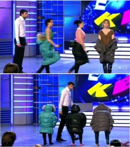 해외 방송프로그램의 한 장면을 담고 있는 해당 영상에는 세 여인이 허리에 점퍼를 두르고 무대로 나타나며 시작한다.