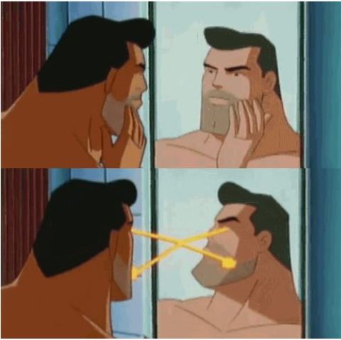 사진 속의 슈퍼맨으로 보이는 남자는 면도기를 사용하지 않고 눈에서 발사되는 레이저를 통해 수염을 태워 면도를 하는 기발한 모습을 보여준다.