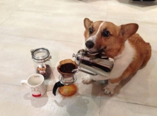 이 사진에는 강아지가 드립 커피를 내리는 장면이 담겨져 있는데 뜨거운 물이 담겨있는 듯한 주전자를 강아지가 입으로 문 채 이를 기울여 커피를 내리는 듯한 자세를 취하고 있다. 네티즌들은 이에 대해 ‘애드리브’와 유사한 뜻을 가진 신조어 ‘드립’을 핸드드립커피의 ‘드립’과 맞물려 ‘개드립’으로 표현하며 재미를 더하고 있다.