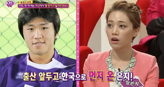 양은지는 “출산 예감이 들자 다음날 일본에서 경기가 있는 남편에게 전화를 해서 오라고 했다”고 말했다. 남편인 이호는 감독님께 사정을 드리고 왔지만 그 날 아이가 나오지 않았다. 이에 이호는 경기를 하러 일본으로 돌아 갈 수 밖에 없었다고 당시를 회상했다.