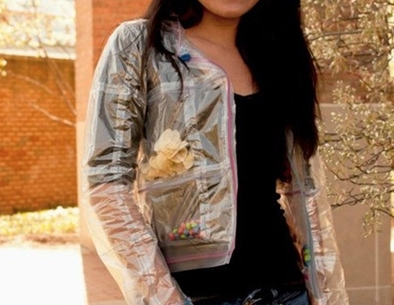10일 온라인커뮤니티에는 음식을 보관할 수 있는 지퍼백으로 의상을 만들어 입은 한 여성 사진이 게재됐다.