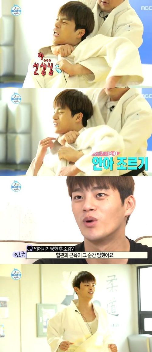 이에 기세등등한 모습을 이어가던 서인국은 관장으로부터 유도 기술인 ‘조르기’ 기술을 당하자 “선생님 잘못 했어요”라고 말하며 바로 약한 모습으로 돌변했다.