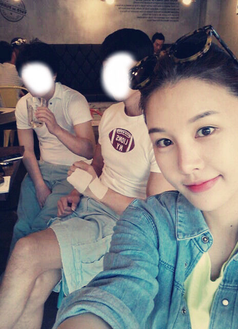 사진 속 박은지는 두 명의 남성들과 함께다. 청색 남방에 선글라스는 머리 위에 걸친 그녀는 살짝 미소를 띤 얼굴로 카메라를 주시하고 있다.
