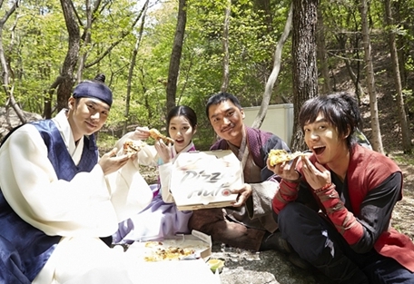 특히 공개된 사진에는 이승기와 배우들이 촬영 의상을 그대로 입은 채 피자를 먹고 있어 웃음을 자아냈다.
