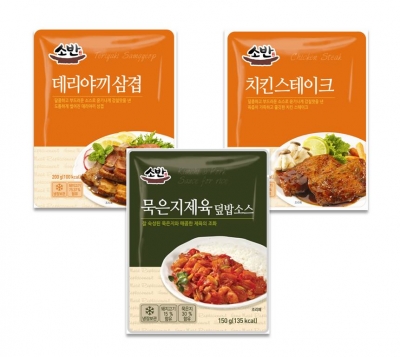 제품은 묵은지제육덮밥 소스(150g, 2300원), 치킨 스테이크(125g, 3000원), 데리야끼삼겹(120g, 3000원) 등 총 3종이다. 세븐일레븐은 묵은지제육덮밥소스를 먼저 출시하고 치킨스테이크와 데리야끼삼겹은 오는 17일부터 선보일 예정이다.