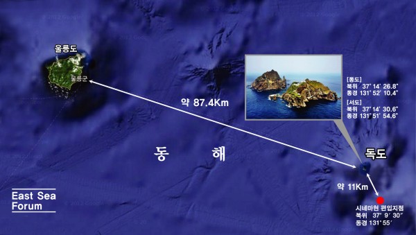 김신(63) 경희대 경영학부 교수가 다음 달 출간하는 '독도학술탐사 보고서'에서 '시마네(島根)현 고시 제40호'의 다케시마는 위치상 존재하지 않는 섬이라는 주장을 제기했다. 김 교수에 따르면 고시에 명시된 다케시마의 위치는 독도로부터 위도와 경도가 각각 5분, 3분 정도 차이가 났고 거리도 약 11km 떨어져 있다.
