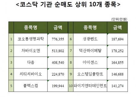[코스닥 기관 순매도 상위 10개 종목]