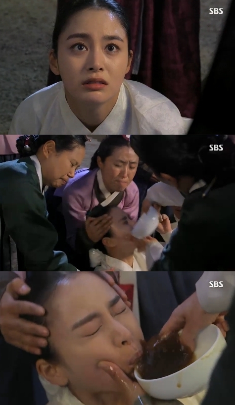 대비는 "약을 쏟아부어라"고 명령했고 상궁들은 장옥정 머리를 뒤로 젖힌 뒤 약을 억지로 입에 들이부었다.