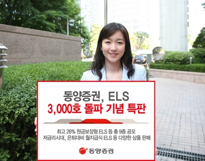 동양증권은 주가연계증권 MYSTAR ELS 3000호 돌파를 기념해 5월16일까지 최고 26% 수익이 가능한 원금보장 ELS를 비롯해 다양한 수익구조로 설계된 ELS 7종과 DLS 2종을 총 480억원 규모로 공모한다.