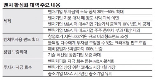 정부는 15일 경제관계장관회의를 열고 관계부처 합동으로‘벤처·창업 자금생태계 선순환 방안’을 발표했다. 이번 벤처기업 활성화 대책은 박근혜 정부가 경제활력 회복을 위해 4·1 부동산 종합대책, 추경예산 편성, 5·1 수출·투자 활성화 대책에 이은 네 번째 내놓는 정책 패키지다.