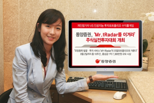 동양증권(MyAsset.com)은 오는 27일부터 8월2일까지 총 10주간 일반 참가자들과 함께 유망종목 실시간 발굴·추천 서비스인 ‘MY tRadar’의 추천 모델포트폴리오 ‘Mr. tRadar’가 참가해 자웅을 겨루는 주식실전투자대회를 개최한다.