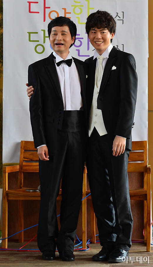 공식적 동성애 커플인 김조광수 감독과 김승환 씨가 15일 서울 이수 아트나인에서 결혼 기자회견을 가졌다. 김조광수-김승환 커플이 기자회견을 마친 후 포즈를 취하고 있다. 양지웅 기자 yangdoo@