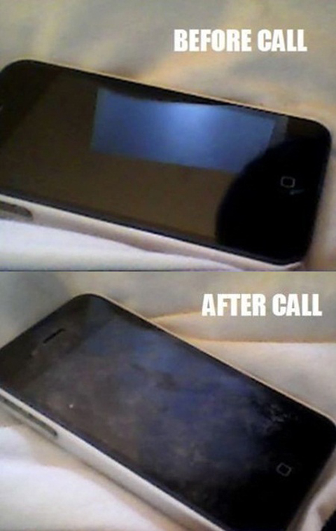 통화 전후 핸드폰 변화 사진이 해외 유머사이트에 게재돼 화제가 되고 있다.