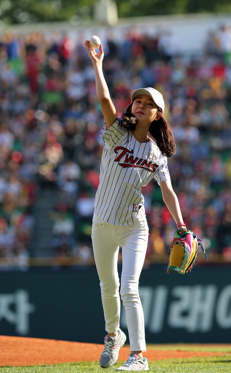 백진희가 17일 오후 서울 잠실야구장에서 열린 '2013 한국야쿠르트 세븐 프로야구, LG 트윈스와 KIA 타이거즈'의 경기에 앞서 시구를 하고 있다.