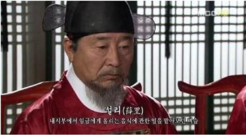 게재된 사진에는 TV 드라마 사극 속 한 장면이 담겨 있으며 '설리'라는 벼슬에 오른 한 남성이 조선시대 의복을 입고 있다. 화면 아래에는 '내시부에서 임금에게 올리는 음식에 관한 일을 맡아 보던 벼슬'이라는 설리에 대한 뜻 풀이가 나와 있다.