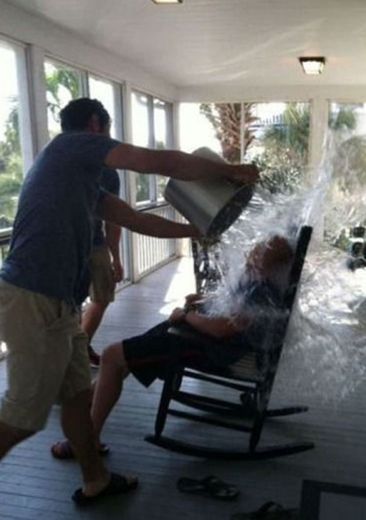 사진속 한 남성은 친구에게 물세례를 퍼부으며 잠을 깨우고 있다. 그 어떤 알람보다 강렬한 방법이다.