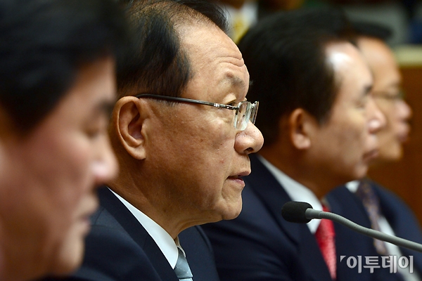 황우여 새누리당 대표가 22일 오전 국회에서 열린 최고중진연석회의에 참석해 모두발언을 하고 있다. 노진환 기자 myfixer@