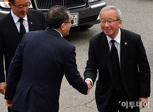 고(故) 남덕우 전 국무총리 영결식이 22일 오전 서울 동작구 국립서울현충원 현충관에서 사회장으로 열렸다. 현오석 경제부총리가 영결식에 참석하고 있다. 방인권 기자 bink7119@