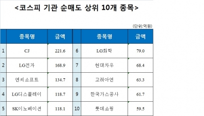 [코스피 기관 순매도 상위 10개 종목]