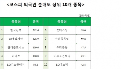 [코스피 외국인 순매도 상위 10개 종목]
