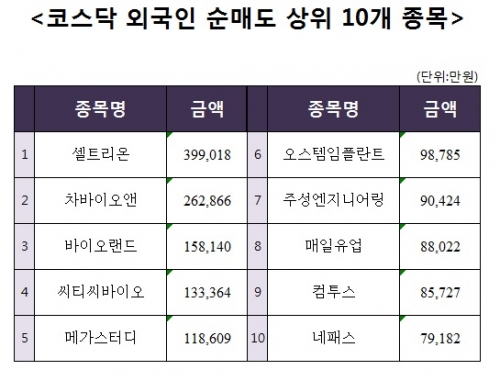 [코스닥 외국인 순매도 상위 10개 종목]