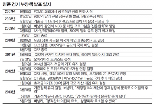 다만 버냉키 의장은 경제상황에 따라 채권매입 규모 축소를 할 수 있다고 밝혔다. 그는 “고용시장이 본격적이며 지속가능하게 개선된다면 채권매입 속도를 늦출 수 있다”면서 “경제지표에 따라 앞으로 열릴 몇 차례 FOMC에서 매입속도를 조절할 수 있을 것”이라고 말해 양적완화 축소 가능성을 배제하지 않았다.