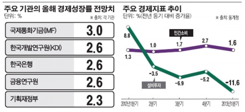 KDI는 23일 발표한 ‘2013년 상반기 경제전망’ 보고서에서 올해 우리나라의 실질 국내총생산(GDP) 증가율을 2.6%로 내다 봤다. 우리 경제가 내수와 수출 모두 완만한 개선 추세를 보이며 수입물가 하락에 따라 투자도 개선될 것이라는 판단에 따른 것이다.