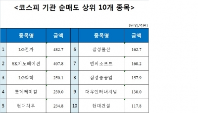 [코스피 기관 순매도 상위 10개 종목]