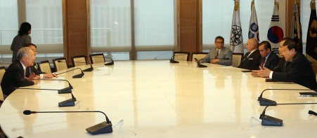 손경식 대한상공회의소 회장(왼쪽 첫 번째)은 24일 오전 대한상의회관에서 차이룰 탄중 인도네시아 국가경제위원회 위원장(오른쪽 첫 번째)을 만나 양국 간 경제협력 증진방안에 대해서 논의했다.