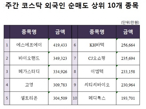 [주간 코스닥 외국인 순매도 상위 10개 종목]