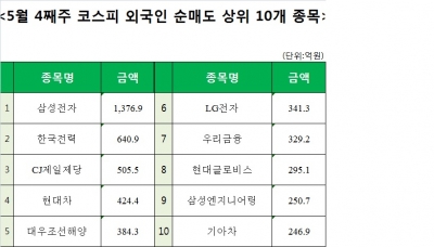 5월 4째주 외국인 순매도 상위 10개 종목