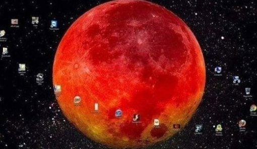 공개된 사진은 바탕화면에 커다란 행성이 있고 그 주변에 아이콘들이 띠를 만들어 화면을 채운 모습을 볼 수 있다.