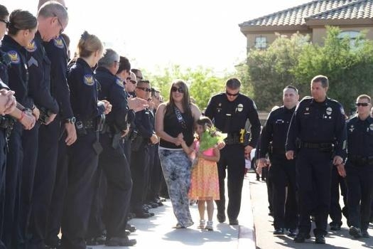 유치원 졸업식에 등장한 경찰들 사진은 해외 어느 곳의 순직한 동료 경찰관 딸의 유치원 졸업식에 나타난 경찰들의 모습이 담겨있다.