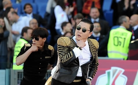 싸이는 현지시각 26일 로마 올림픽 스타디움에서 열린 AS 로마와 라치오 간 이탈리아 축구컵 결승전 식전 행사에서 '강남스타일'을 부르는 도중 관중석에서 야유를 받았다. 한쪽에서는 폭죽을 터뜨리는 등 소란을 빚었다.